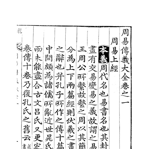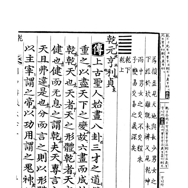 유학 오경(五經)의 하나로 역경(易經)이라고도 한다. 만상(萬象)을 음양 이원으로써 설명하여 그 으뜸을 태극이라 하였고 거기서 64괘를 만들었는데, 이에 맞추어 철학ㆍ윤리ㆍ정치상의 해석을 덧붙였다. 복희씨(伏羲氏)가 8괘와 64괘를 그렸으며 문왕(文王)이 연역하여 괘사(卦辭)를 짓고, 주공(周公)이 효사(爻辭)를 지었으며 공자(孔子)가 십익(十翼)을 붙임으로 《주역》이 완성되었다. 이에 송나라 정이(程頤)의 정전(程傳)과 주희(朱熹)의 본의(本義)를 붙여 지금 《주역전의(周易傳義)》가 되었다.