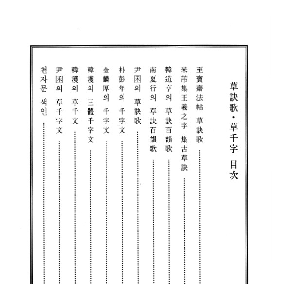 이 책은 草訣歌 5종과 草千字 5종을 묶은 것이다.