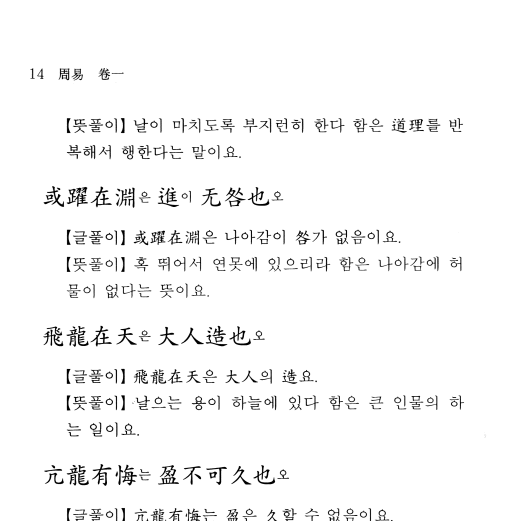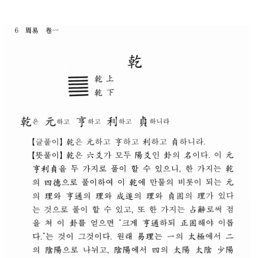 유학 오경(五經)의 하나로 역경(易經)이라고도 한다. 만상(萬象)을 음양 이원으로써 설명하여 그 으뜸을 태극이라 하였고 거기서 64괘를 만들었는데, 이에 맞추어 철학ㆍ윤리ㆍ정치상의 해석을 덧붙였다. 복희씨(伏羲氏)가 8괘와 64괘를 그렸으며 문왕(文王)이 연역하여 괘사(卦辭)를 짓고, 주공(周公)이 효사(爻辭)를 지었으며 공자(孔子)가 십익(十翼)을 붙임으로 《주역》이 완성되었다. 이에 송나라 정이(程頤)의 정전(程傳)과 주희(朱熹)의 본의(本義)를 붙여 지금 《주역전의(周易傳義)》가 되었다.