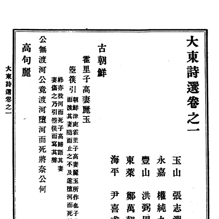 1918년 장지연(張志淵)이 편찬한 역대 한시선집(漢詩選集) 12권. 고조선에서부터 한말까지 2천여인의 각체시(各體詩)를 선집하여 만든 것으로 한시선집 중에서 가장 방대하다.