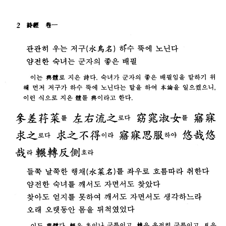 유교 오경(五經)의 하나이다. 중국 최고(最古)의 시집(詩集)으로 공자(孔子)가 편찬하였다. 주(周)나라 초부터 춘추 시대까지의 시를 풍(風)ㆍ아(雅)ㆍ송(頌)의 세 부문으로 나누어 305편을 수록하고 있기에 시삼백(詩三百) 또 삼백편(三百篇)이라 일컬어진다. 한나라 모형(毛亨)이 전하였다고 하여 ‘모시(毛詩)’라고도 한다.