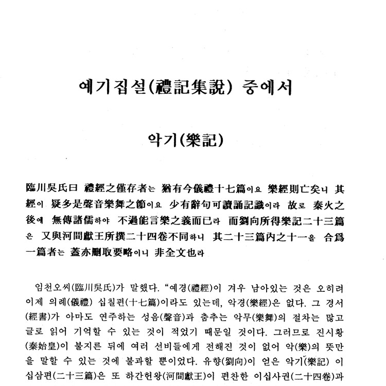 《예기(禮記)》의 한 편(篇). 음악에 관한 사항을 다루었다.